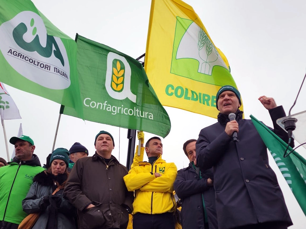 Immediatamente dopo spiccava Coldiretti, che ha mobilitato circa 1.000 iscritti carichi di palloncini, cartelli e striscioni con lo slogan «Ursula go home».