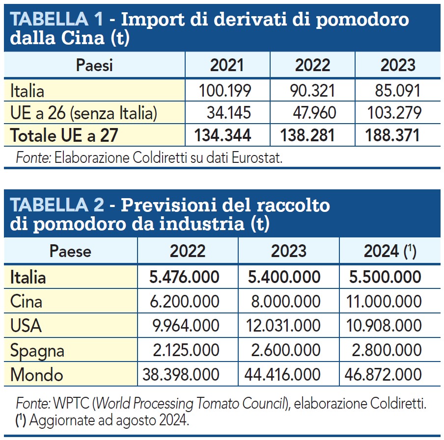 Infatti, nell’ultimo anno le importazioni di derivati del pomodoro cinesi nei 26 (senza l’Italia) hanno superato le 100.000 t(erano meno di 50.000 t nel 2022 e meno di 35.000 nel 2021).