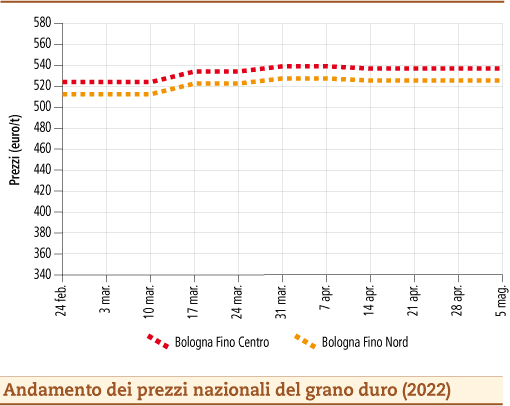 I prezzi del frumento duro nazionale sono rimasti invariati.