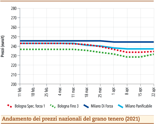I prezzi del frumento tenero nazionale sono rimasti invariati.