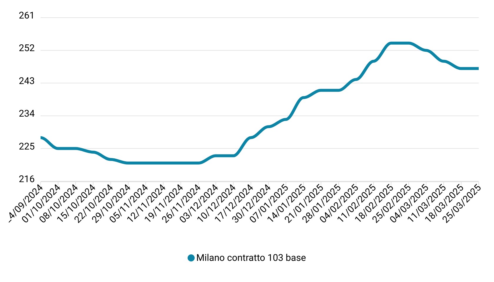 A Milano il “convenzionale” vale 247 euro/t, la merce con caratteristiche 253 euro/t.