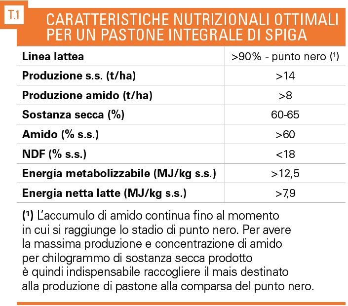 Il contenuto in amido per kg di sostanza secca è naturalmente il primo parametro da considerare quando si valuta un pastone integrale di spiga: questo può essere definito ottimo quando il suo contenuto in amido è superiore al 60% della s.s. (eccellente con amido oltre il 65% s.s.).