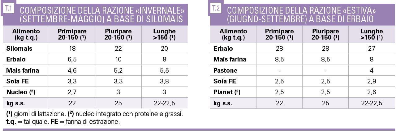 Possiamo dire con certezza che questa non è la miglior soluzione tecnica, ma la Manerbiese ha saputo fare di necessità virtù e nell’arco dell’anno, nonostante le due diverse diete, l’azienda riesce a mantenere livelli di produzione e qualità molto soddisfacenti: questo è possibile solamente grazie a una gestione accurata e attenta nella produzione di foraggi di elevata qualità e nella variabilità dei foraggi inclusi nella razione e a un monitoraggio continuo della dieta, sia da un punto di vista chimico sia fisico.