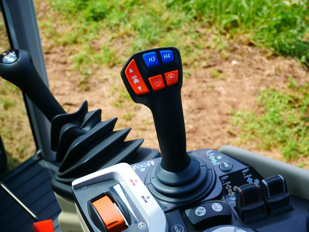 L’esemplare provato, essendo in versione Efficient, è fornito di un impianto idraulico performante a centro aperto. Le tre pompe montate in serie sul lato sinistro del propulsore forniscono una portata complessiva di 120 L/min (nella versione Essential le pompe sono due con capacità totale di 93 L/min). La pressione massima di esercizio è di 195 bar.