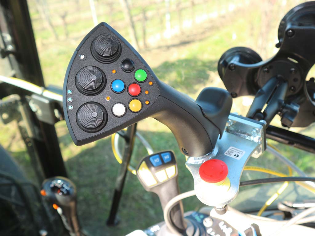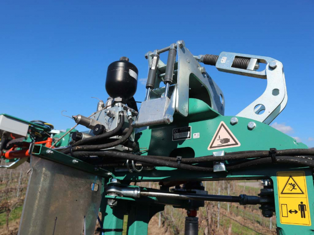 Il rilevamento ottico brevettato con telecamera Clemens Vision è basato sull’intelligenza artificiale, ovvero un algoritmo opportunamente «addestrato» al riconoscimento di qualsiasi tipologia di palo. Quando il sensore rileva il palo, viene inviato il comando alla valvola elettroidraulica che gestisce il pistone idraulico dedicato all’apertura del gruppo di taglio. Il sensore ottico è montato su un supporto metallico in posizione ortogonale al filare e avanzata rispetto ai rulli, opportunamente protetto da un vetro blindato. La telecamera rileva l’intera parete fogliare, riconosce le varie tipologie di palo e il loro stato (rotti, piegati, storti), reagisce all’inclinazione ed è fornita di LED per il lavoro notturno. A supporto del rilevatore ottico vi è un sensore della velocità di avanzamento montato sopra la testata di taglio.