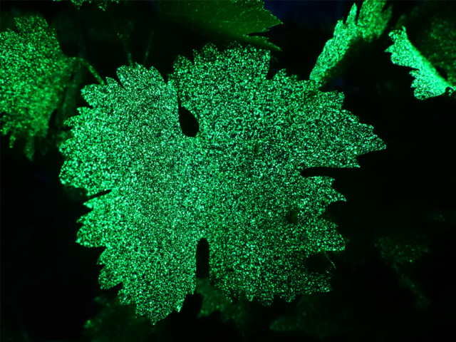 Il risultato ha permesso di verificare visivamente l’uniformità di distribuzione della soluzione nebulizzata sull’intera vegetazione che, secondo i calcoli eseguiti dal tecnico Martignani in base ai parametri sopra elencanti, si è attestata attorno a 1.500 goccioline/cm2.