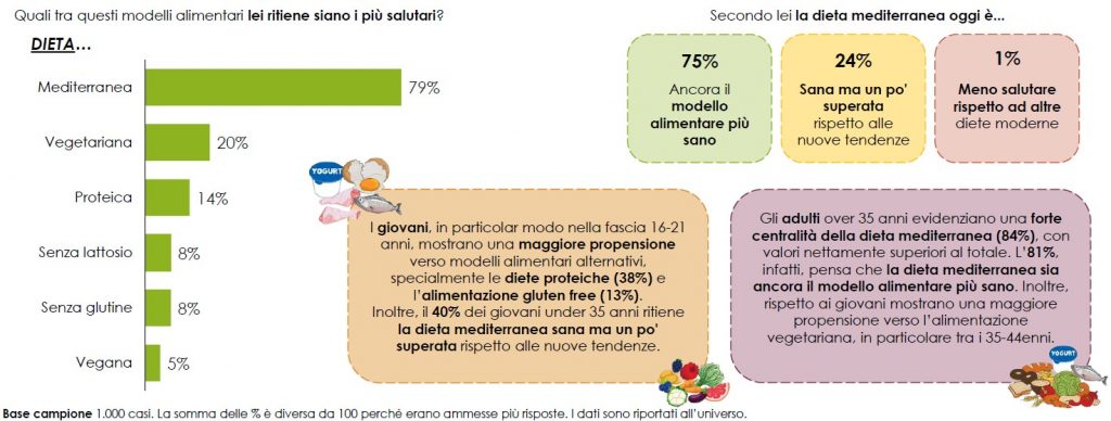 Il 79% indica inoltre la dieta mediterranea come il modello alimentare più salutare, e per il 95% dei consumatori l’attenzione al Made in Italy rappresenta un criterio di scelta negli acquisti alimentari.
